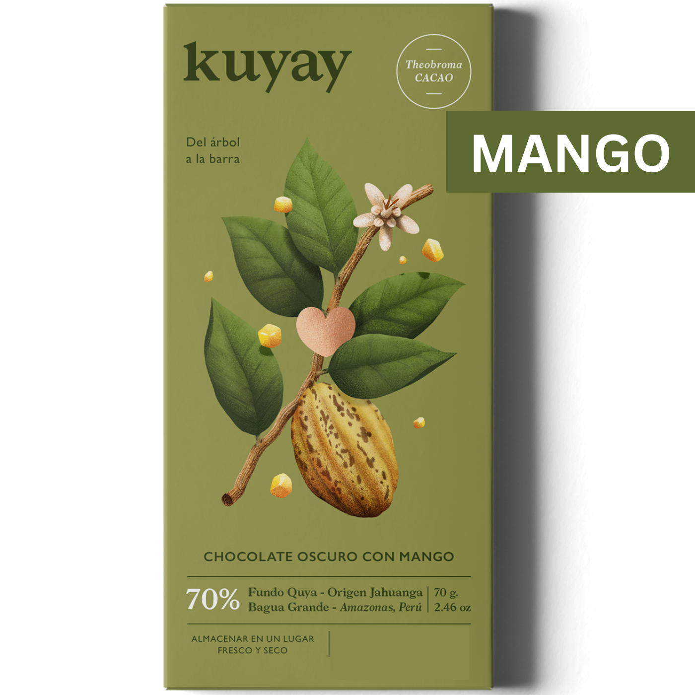 Tauche ein in die verlockende Welt der Kuyay Schokolade mit Mango. Diese exquisite Tafel kombiniert den intensiven Geschmack von Amazonas-Kakao mit der fruchtigen Frische süßer Mangos. Hergestellt aus einem einzigartigen Blend von über 135 verschiedenen Kakaosorten, die auf der Quya-Farm im Amazonasgebiet Perus gedeihen, bietet diese Schokolade ein komplexes und unvergessliches Geschmackserlebnis.